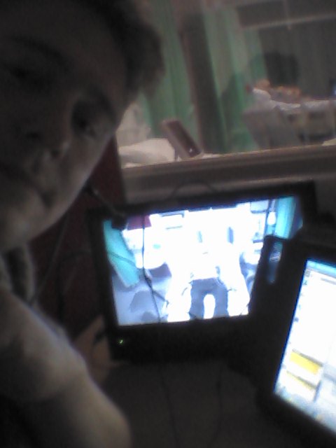 My peers performed ECGs on a rather frightening, dead-eyed humanoid that was, unbeknownst to them and in conjunction with my voice, being used as a conduit for a scenario pertinent to our learning. That’s me on the right, there, next to my control station (a closer view makes up the header for this post) which allowed me to alter heart rate, breathing rate, create a whole host of arrhythmias and not only see my colleagues, but speak to and hear them as well.